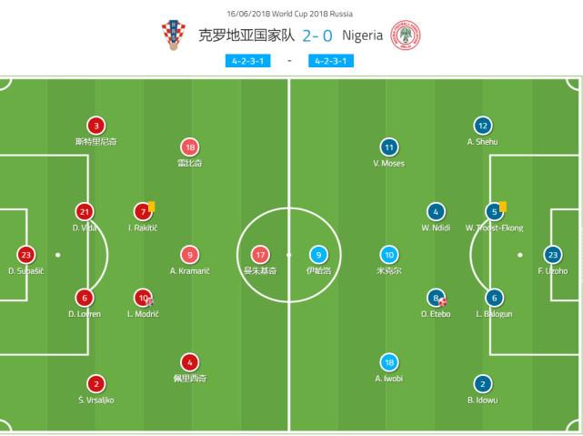 随后,队长莫德里奇主罚点球命中,克罗地亚队2-0领先尼日利亚,后者随后也没获得过太好的机会,最终比分也锁定在2-0。